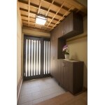天井の高さを生かした収納をご提案。 素敵な天井は既存のまま残しました。