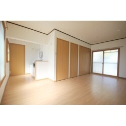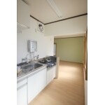 玄関入ってすぐキッチン、居室は2間続きで分けて利用するのには勝手が悪い。 洗濯機はベランダ。