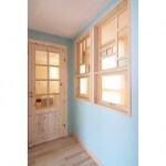 築20年が人を呼ぶ癒しのサロンへ。風水を取り入れた空間が安らぎのひとときを演出。木製扉と珪藻土の壁にやさしさが漂い、来客も家族もやさしく出迎えるエントランスへ。