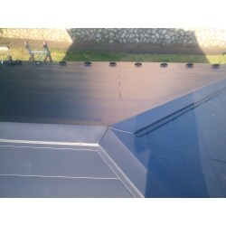 現地調査時に応急処置を行い、屋根全体が傷んでいた為、この機会にカバー工法での工事をご提案いたしました。