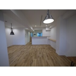 現在のLDKと隣接した和室を一緒にしてご要望の間取変更の ご提案をさせて頂きました。 無垢材のフローリングに憧れをお持ちになっておられたので マンションでは必須の防音材の種類や施工方法をご提案させていただきフローリングに似合う輸入建具のご提案やキッチン移設による既存配管の移設等のご提案をさせていただきました。