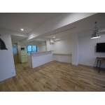 既存のキッチンを隣接した和室側に移設して広々としたLDKnなりました。 床材は無垢材のアンティークオーク材を使用しております。