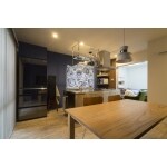 洋室に替えて、リビングとしました。 木製のブラインドと正面の壁面ルーバーがとっても素敵ですね。 床材は塩ビタイル仕上げです。 床材:リリカラ LYT-83287塩ビタイル 大きな窓には木製のブラインドを取り付けました。カーテンやロールスクリーンにない味わいを感じられます。