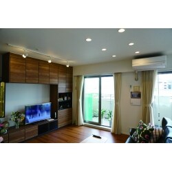 フローリングを新調し、押入れだった場所はリビングクローゼットへリフォーム。 照明は、よりスッキリとするダウンライトをご提案しました。 壁面収納は多彩なパーツやユニットを組み合わせて、お好みや収納するものに合わせて作ることができるパナソニック「キュビオス」を設置。 今回和室をなくしたため、キュビオスのプランはお仏壇が置けるよう設計しています。 無駄なスペースができないよう事前にお仏壇の寸法を測り、ぴったりと置くことができました。 明るい空間でゆったりとお寛ぎいただけるリビングになるようにイメージしてご提案しました。