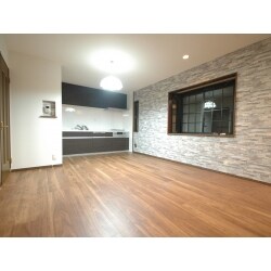 リビングはフローリングを含め内装を一新。壁の一面は柄物のクロスを採用し、空間に変化を持たせています。