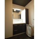 以前の化粧台よりも小さい物を選定し、収納棚を新たに設置しました。