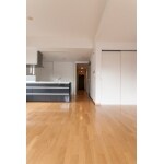 明るいフローリングとアクセントクロスで明るい印象に