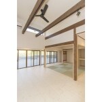 10年近く空き家になっていたおじいさまの家を引き継ぎ、お孫さま一家が住むことになりました。 共働きご夫婦の生活スタイルに合わせ、なるべく広いLDKを確保されたい。ご主人さまの趣味のバイクは、ガレージをつくり屋内で管理したいとご要望されていました。