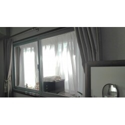 一般的なガラス1枚仕立ての引違のサッシとカーテンの窓でした。