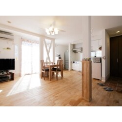 水廻りは移設しLDKは増築。仕切りや段差を極力なくして車椅子でも動きやすく、家族みんなが快適に生活できるようになりました。の子ども部屋の引戸を開け放てばひとつながりの大空間に早変わり。ナチュラルで明るい雰囲気のインテリアで、家族もゲストも心地よく過ごせます。 クス売僧でも不自由に感じないよう、導線だけでなくスイッチや手すり、その他造作物の高さにも配慮しています。