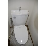 節水効果の高いトイレと洗浄力の強い温水洗浄便座をご提案させていただきました。 汚れが付きにくくお掃除しやすいフチなし便器でお手入れもラクラクです。 また、トイレ一式と併せて壁のクロスの張替も施工させていただきました。