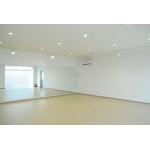(旧京都建物株式会社(京都建物工務店リフォーム)での事例です。)テナント募集していた30坪程のスペースをダンススタジオ開設に伴う内装工事をさせていただきました。ダンスフロアからの音漏れに配慮し、間仕切りの壁には遮音壁防音ドアを設置。床材にはダンスの衝撃等に配慮した下地材を使用。演出や種目に合わせてライティングが出来るように照明はダウンライトとレール照明をご提案させていただきました。