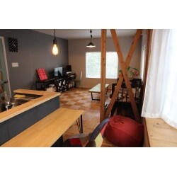 ご実家に帰省されるに伴い、今まで使用していなかった お部屋を改修しLDKに変更されたいというご要望 だった為、2つの部屋に間にある壁を取っ払い 取っ払った後の天井に梁の補強を行い、木の温もりを 感じたいというご要望には無垢材のフローリングとカウンターを施工させて頂きました。 ただ、無垢材を使用するだけではご満足頂けるか 不安だったため、遊び心で対面キッチンの立ち上がりを コンクリートブロックで積み上げ、質感の違う面白みのある仕上がり、大変ご満足頂けました。 施工後には作り上げる喜びを施主様に感じて頂ければと思い コンクリートブロックの塗装・無垢フローリングの塗装を 職人たちと一緒に施工して頂きました。