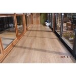 S様より、玄関・廊下・広縁の床がブカブカしていて歩くと沈むような感じがするとご相談いただきました。将来建て替えの可能性があるため、あまりお金をかけて直すのではなく、必要最低限にしたいとのご希望でした。色は今よりももう少し明るく、でも木目はそのまま引き立てたいとのこだわりもお持ちでした