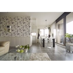 造作した壁のリビング側には、エレガントな花柄クロスを施工しました。リビングを彩るアクセントになり、お家にご招待したお客様に華やかなおもてなしができます。