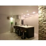 鉄骨造ですので間取り変更に多少の制約がありましたが、何度もお打合せさせていただき、ご要望をできる限り詰め込んだご提案をさせていただきました。 水まわり設備、建具、タイル等はお客様がこだわってお選びになられたものでしたので、それらに合う内装や照明プランをご提案致しました。