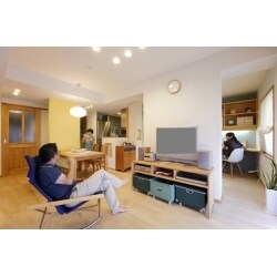 仕事柄、深夜に帰宅することの多いTさまのご要望は家族の時間を大切にしたいということが第一でした。読書コーナーを設けることも留意しつつ、空間を狭く感じさせない工夫として、仕切り壁を効果的に配置。家族が別々の作業をしていながらも、一つの空間でお互いの気配を感じられる間取りを実現しました。 また、キッチンに小窓をつけて閉鎖感を軽減。お子様のお勉強姿を見ながら料理ができます。 2つの洋室を挟んで大型のクローゼットを設け、衣服などは一か所に収納できるよう工夫し、風が抜ける間取りにしています。ご入居後は、それぞれのお気に入りの場所を見つけたりと、ご家族で会話する時間が長くなったそうです。