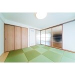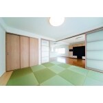 リビングの隣にある和室の畳を半帖畳に交換し、リクシルウッディラインの可動間仕切りを設置しました。 圧迫感無く空間を仕切るアクリル系のパネルなので、リビングからの採光を取り入れ扉を閉めても明るい空間に変わりました。 扉を閉めれば和室の一部屋として、開ければリビングとつながるワンルームとして、用途に合わせて変化をつけられます。 また空間を仕切ることにより、広いリビングの冷暖房効率がアップする点もポイントです。 可動間仕切りは「ガイドピン」というピンで固定するため、床にレールが無いので段差を最小限に抑えられバリアフリーになりました。 押入れは襖ではなく、木目の引き違い戸を採用するなど和と洋を融合させることによって、洋室のリビングから見ても違和感が無く、和室の落ち着いた空間を演出することができました。