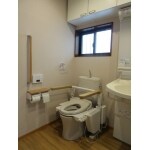 トイレは、トイレの際の立ち座り、介助作業が無理なくできるトイレリフトを採用し、手すりは、介助しやすいように手すりを上に上げて使用するはね上げタイプを設置いたしました。