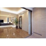 居住スペース全体の間仕切りを取り去りワンルーム化、これで通風・採光を一挙に解決 キッチンやバスルームへの不満と同時に部屋全体の風通しを改善するために、大胆でしたが2階全体をワンルームにすることを考えました。バスルームは南側に移し、テラスにも直接出られるようにして開放感を。キッチンは東側に移してカウンターキッチンに変え、同時に見せる収納も一部に取り入れました。さらにバリ島がお好きなご夫婦なので、リゾートのような雰囲気を出すためにテラスと室内が連続した空間に見えるよう工夫をしています。その結果が、外壁を後退させ、しかもタイルの一部を室内側に見せるアイデアです。室内側に見せるようにした外壁タイルの落ち着いた風合いと床のクリのフローリングが見事に調和しています。