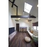 6帖の洋室に廊下を取り込んで広くするとともに、天井面が水平な平天井を取り払って勾配天井に変えました。これによって縦の広がりを最大限に活かして、室内にあまり届かなかったトップライトからの光を十分採り込めるようにしました。また、梁を見せることで空間により広がりが感じられるように配慮。床や建具、梁はダークブラウンに塗装し、壁は白い木絹クロスにして落ち着きのある空間に仕上げました。抜けない通し柱や筋交いを活用してバーシンクコーナーを設け、施主様念願のファミリーリビングを実現しました。