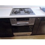 ガスコンロ・ガスオーブン・レンジフードを交換しました。コンロは4口のホーロートップから、広々使える3口のガラストップに交換して、ガスオーブンは大きすぎて電気も使い過ぎていて使いにくいとの事でしたのでひと回り小さく電子レンジ機能が付いたものに変更しました。また、レンジフードは省エネで掃除のしやすいものに交換しています。今回すぐに使える様にすべての工事を1日で完了させました。