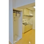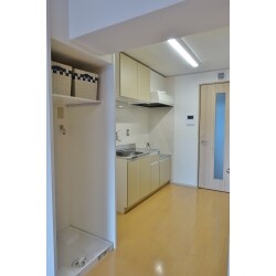 玄関とキッチンの間に間仕切壁を新設。 チャイムは、カメラ付きドアホンに変更しました。 壁はクロス仕上げ、床は防音フローリング仕上げ 天井は既存天井を塗装で仕上げました。 照明器具は直管タイプのLEDに交換しました。
