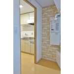 玄関とキッチンの間に間仕切壁を新設。 大きなボイラーは、新しい給湯器に変えて設置場所をキッチンから玄関へ移設しました。 お客様のお選びいただいたレンガ調のクロスが おしゃれです。