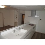 キッチンの間仕切りを撤去して、給排水設備関係の移動を行いI型3300のシステムキッチンを提案させて頂きました。 マンションのエレベーターにはカウンターが長く乗りませんでしたが、外階段を廻して搬入する提案をさせて頂きました。