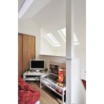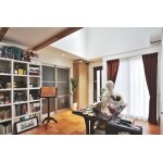 生活リズムの違うご両親との同居の為、母屋をなるべく通らず制作活動に集中し生活出来るよう、増築部分に玄関、トイレ、寝室を設けた。また、制作に必要な洗面台および洗濯機置場も設置。美術作品の事を考え、自然光を取り入れるトップライトの設置しました。断熱効果として屋根に熱反射材の使用および室内に断熱塗料のガイナを使用。さらに気密性向上の為、床材を2重にし、間にポリフィルムをサンド。また床は清掃や貼替えが容易な塩ビタイルを使用し制作環境に重点をおき生活しやすい部屋をつくりました。