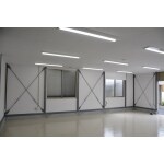 1階では大型機械による電化製品の検査等があり、納品も頻繁にあるとのことで、高さ3m幅2.6mの手動軽量シャッターを3基設けることをご提案いたしました。