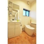 1階に大きな洗面室がありますが2階にも洗面化粧台があると便利なので設置しました。洗面室をつくるスペースが無い為トイレの横に洗面化粧台を設置しコンパクトにまとめました。