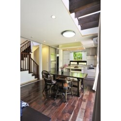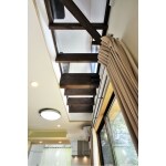 谷あいの木立に囲まれた家は素晴らしい景色の一方で日陰や湿気をもたらします。心配だった耐震性をまず調査の上強化しました。今までの掃き出し窓だけでは日の当たる時間が限られるので、思い切って2階に入る光も階下に届くよう計画。天井の一部を強化ガラスにして大きな明かり取りを作り、2階に差し込む光をリビングまで届けています。 玄関の反対側にあったキッチンと居間、食堂を合わせて作った広く奥行きのあるLDKは、段差をゆるくし、ステップを増やした階段も取り込み、上へも広がる開放的な空間に。階段前にはガラスのパーテーションを設け冷暖房の効率を配慮。無垢のフローリングに床暖房を敷き、建具等は枠と共に全てオーダー。サッシはペアガラスに交換。壁、天井には、断熱、調湿効果のある塗り壁で仕上げ、外壁も断熱塗料で塗装、室内の快適性は格段に向上、湿気の問題を解消しました。 柔らかな色合いの壁と落ち着いた無垢のフローリング、細部までこだわって選んだ内装はとても気に入っていただき 早速お披露目のパーティーを計画されるとおっしゃられていました。