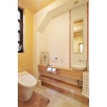 2階の独立していたトイレと洗面を1室にして空間にゆとりをもたせています。互いの扉も近く危なかったので、それも解消できました。寝室近くのトイレと洗面は家族しか使わないので思い切ったデザインにしています。