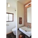 信楽焼の洗面ボウルで、シックモダンな洗面コーナーを