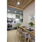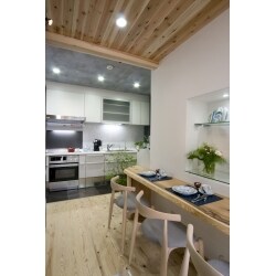 ダイニングとキッチンを入れ替えた間取りに変更することで、窓を拡張し、しっかりと採光が取れるようになりました。照明もダウンライトにする事に空間のテーマに損なわずに明るいダイニングキッチンになりました。