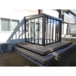 お庭にガーデンルームを設置したいと、弊社にご相談に来られたM様。LIXILのカタログをお渡しし、お好みのデザインをお選びいただきました。種類、大きさ、設置位置等大まかな内容を決め、その後、色や付属品の最終仕様を決め工事を行いました。もともとの広いお庭を有効活用できるよう、ガーデンルームの周りにウッドデッキも設置しました。冬は暖かく、雨や花粉の心配も要らずに洗濯物を干せて、また室内とは少し違ったみんなが楽しめるスペースが完成しました。