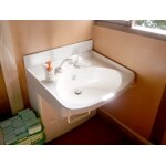 トイレの出入口と洗面台の目の前に段差があったので、床をすべてめくって貼り直しました。 洗面台は昇降式で車椅子に座ったまま使用できる物をご用意しました。