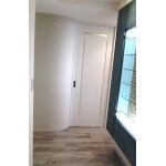 正面のR壁の壁を造作、白基調でインパクトを与えてくれます。張り替えたフローリングの雰囲気、新規建具にも合わせて 設計いたします。