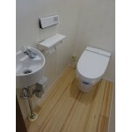狭小住宅ですが、妥協は一切せず充分な広さのトイレを2箇所設置できました。また、1箇所のトイレ内部には手洗い洗面も設置しました。