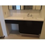 リクシルのルミシスの洗面化粧台を提案させて頂きましたが 、高さが850しかありませんでした。ご希望が900でしたので、下台の造作で900にさせて頂きました。