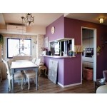 輸入クロスはお施主様の支給品で施工のみさせて頂きました。予め支給品のクロスの色柄を見せて頂き部屋の雰囲気に合った無地のカラークロスをアクセントに! カウンターも枠廻りも全て解体して入替えをしました! 色を変えるだけでこんなにも変身しました! そこで、リクシル ファミリーラインパレットのホワイトオーク柄の建具とフロアタイルでシャビーな感じをご提案! お客様のご希望のデザインに合ったリフォームを弊社は提案させていただきます。