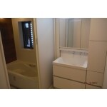 洗面化粧台も交換し、収納スペースを確保するためキャビネットも設置しました。コンパクトな空間も収納豊富のためにすっきりと片付きます。