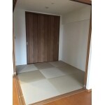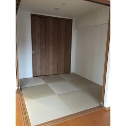 畳は和紙畳、90㎝角の琉球畳としました。 クローゼットはPanasonicベリティスの3枚連動引き戸です。 以前よりも、有効開口が広くなり、物の出し入れがしやすくなりました。 野暮ったい和室から、おしゃれな和洋室へ生まれ代わりました!