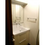 収納豊富な三面鏡タイプをご提案。見た目もすっきりとした清潔感あふれる仕上がりになりました。