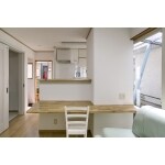 施工後。 冷蔵庫置き場に壁、カウンターを設置することにによって、ダイニング・リビングスペースとの住み分けが実現しました。