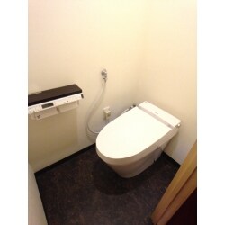 (旧株式会社LIXILリニューアルでの事例です。)LIXILの「サティス(シャワートイレ付)」と、紙巻器とリモコンがセットになっている「インテリアリモコン」をご提案しました。 ちょっとした物が置けるカウンター付きとなりますので、便利です。 また、床の色は、お客様が選択されました。とてもセンスの良い空間になりました。