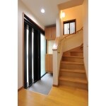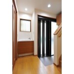 引き戸タイプの玄関ドアは、控えの壁をクリアにすることで、たっぷりと明かりを取り込めます。