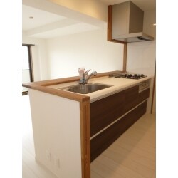 キッチン廻りの壁を取り払いオープン型キッチンをご提案 コンロ前の壁も耐熱ガラスを採用して閉鎖的になりがちなキッチンを開放的にするように工夫しました。吊戸棚がなくなったため収納量が減らないようにより収納がたくさんできるキッチンをお勧めさせていただきました。
