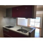 お部屋のアクセントになる、赤いカラーのキッチン。 スライド収納プランのトール足元収納は、背の高いペットボトルや深鍋なども収納できます。 取手の位置も、楽な姿勢で開閉できる高さに設定してあるので、効率的に使用できるのが魅力です。